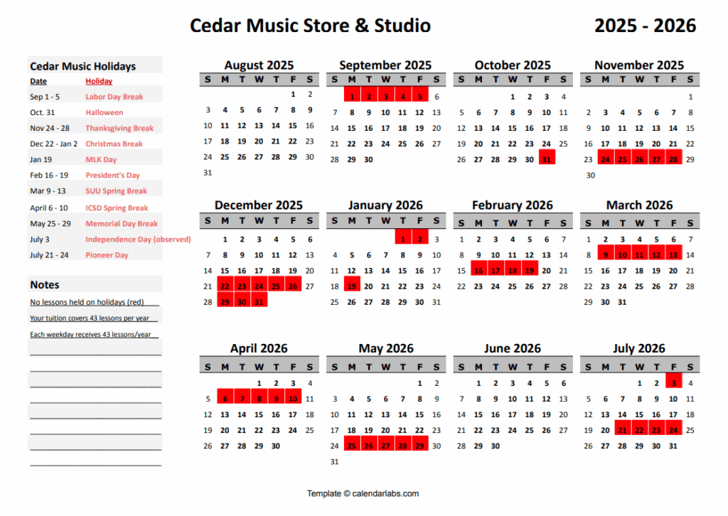 Lessons are taught Monday – Friday. Most days, lessons begin at 3:00 and end when the store closes.